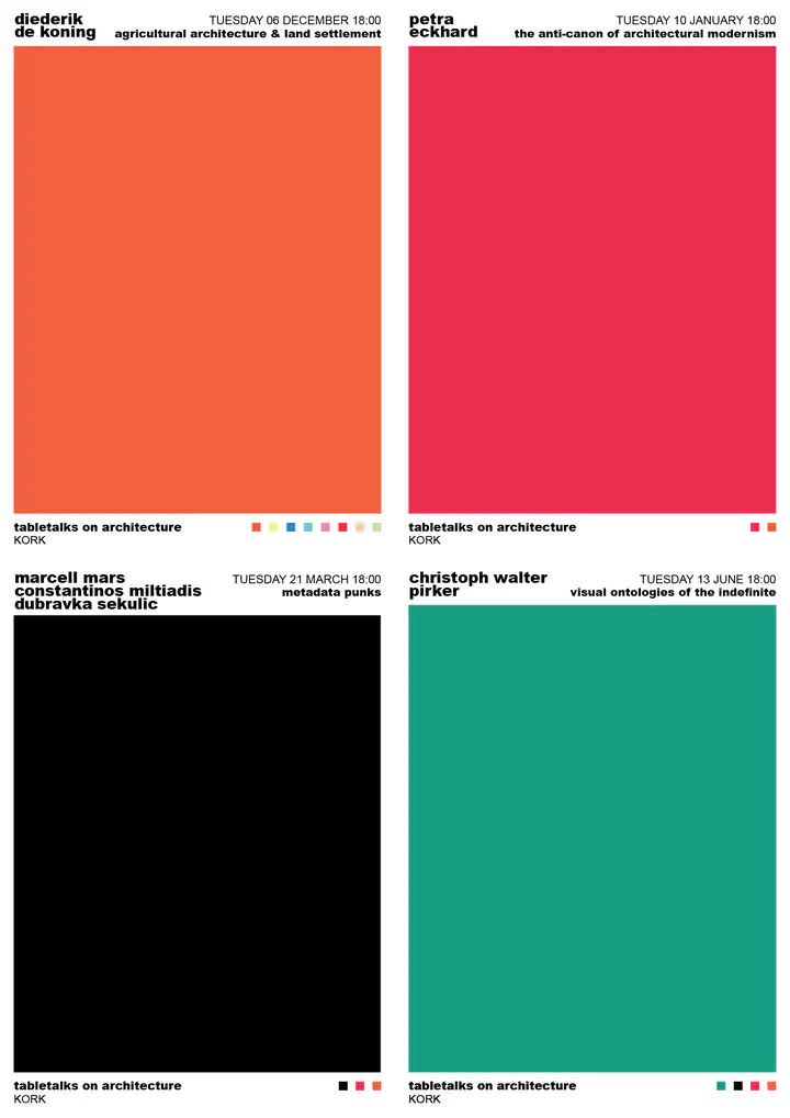 Tabletalks on Architecture was a lecture series produced by a group of university assistants at the Faculty of Architecture, TU Graz between 2016 and 2017. The initiative was conceived as as means to foster current research and as a casual event outside of formal university structures where academics, students, and practicing architects can converge, engage, exchange, and discuss matters related to architecture and architectural research.